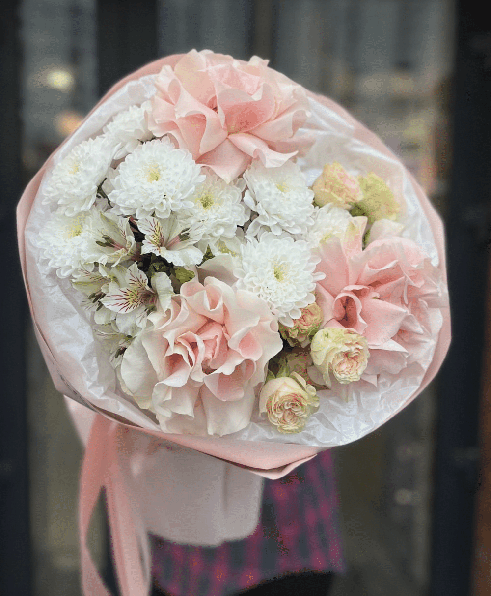 Роза французская 3шт хризантема 2шт альстромерия 1шт кустовая роза 2шт
