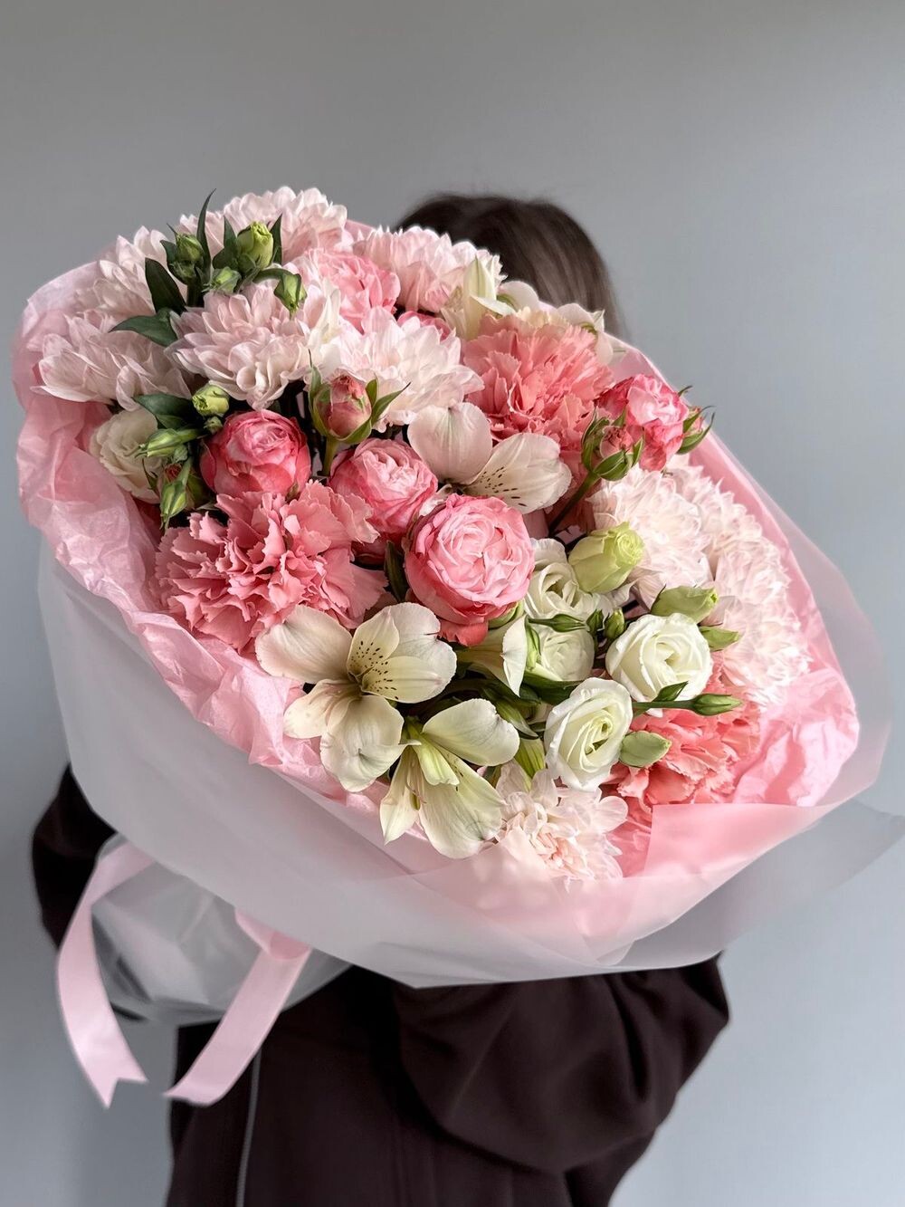 Хризантема 3шт альстромерия 2шт кустовая роза 2шт эустома 2шт диантус 3шт
