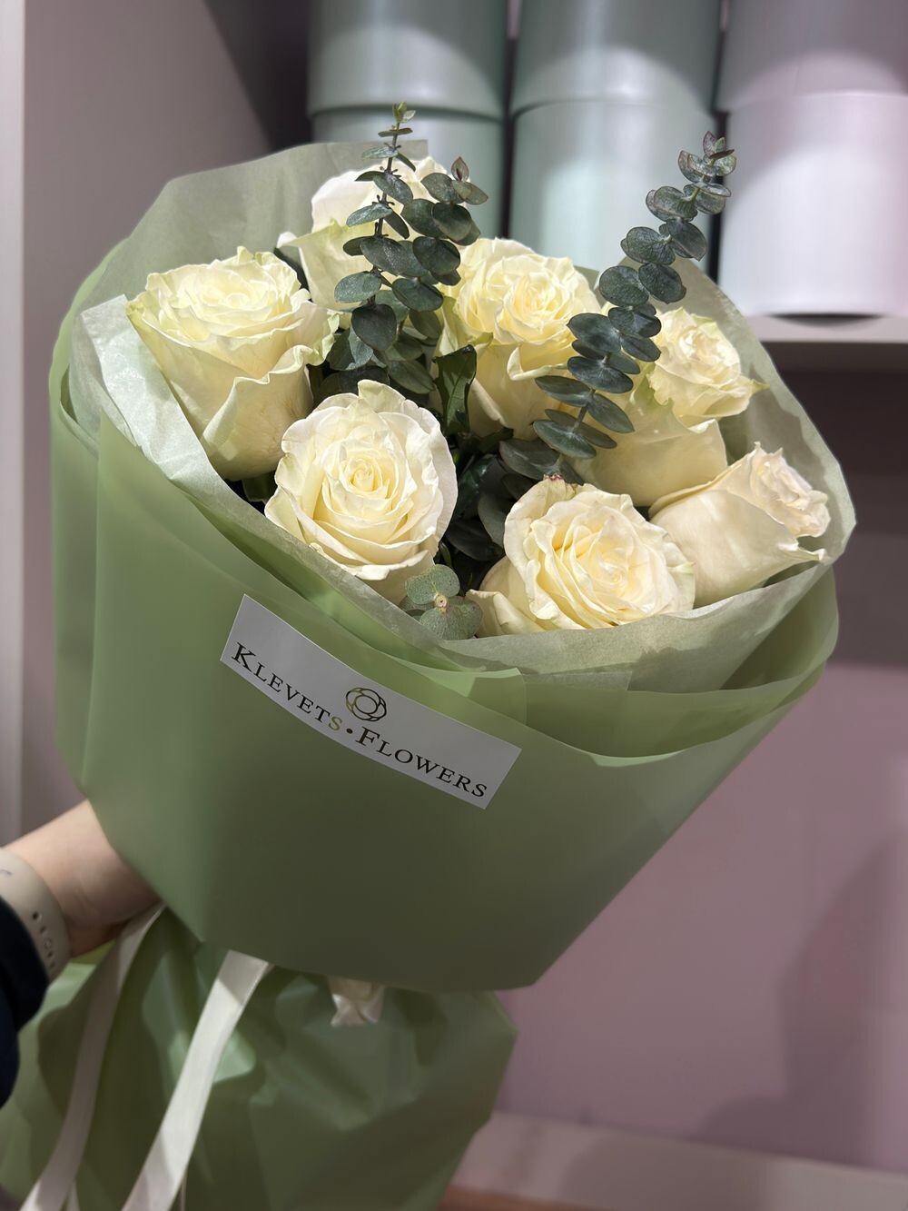 Роза одноголовая 7шт Эвкалипт 3шт