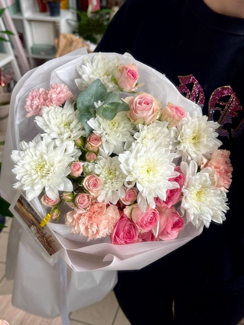 Хризантема 3шт Кустовая Роза 3шт Диантус 3шт Эвкалипт 1шт