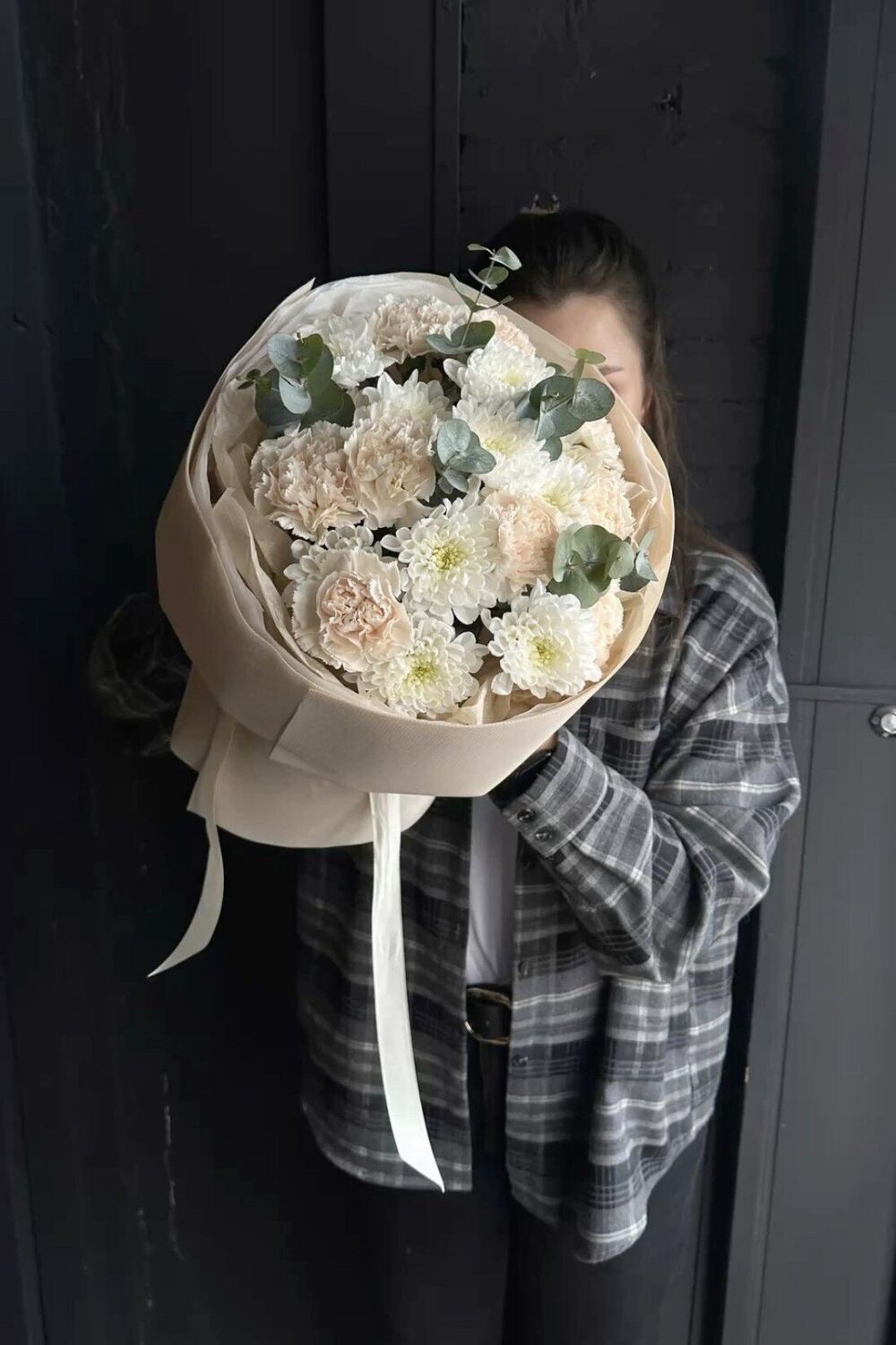 Хризантема-2 шт. Диантусы-5 шт. Эвкалипт-5 шт.