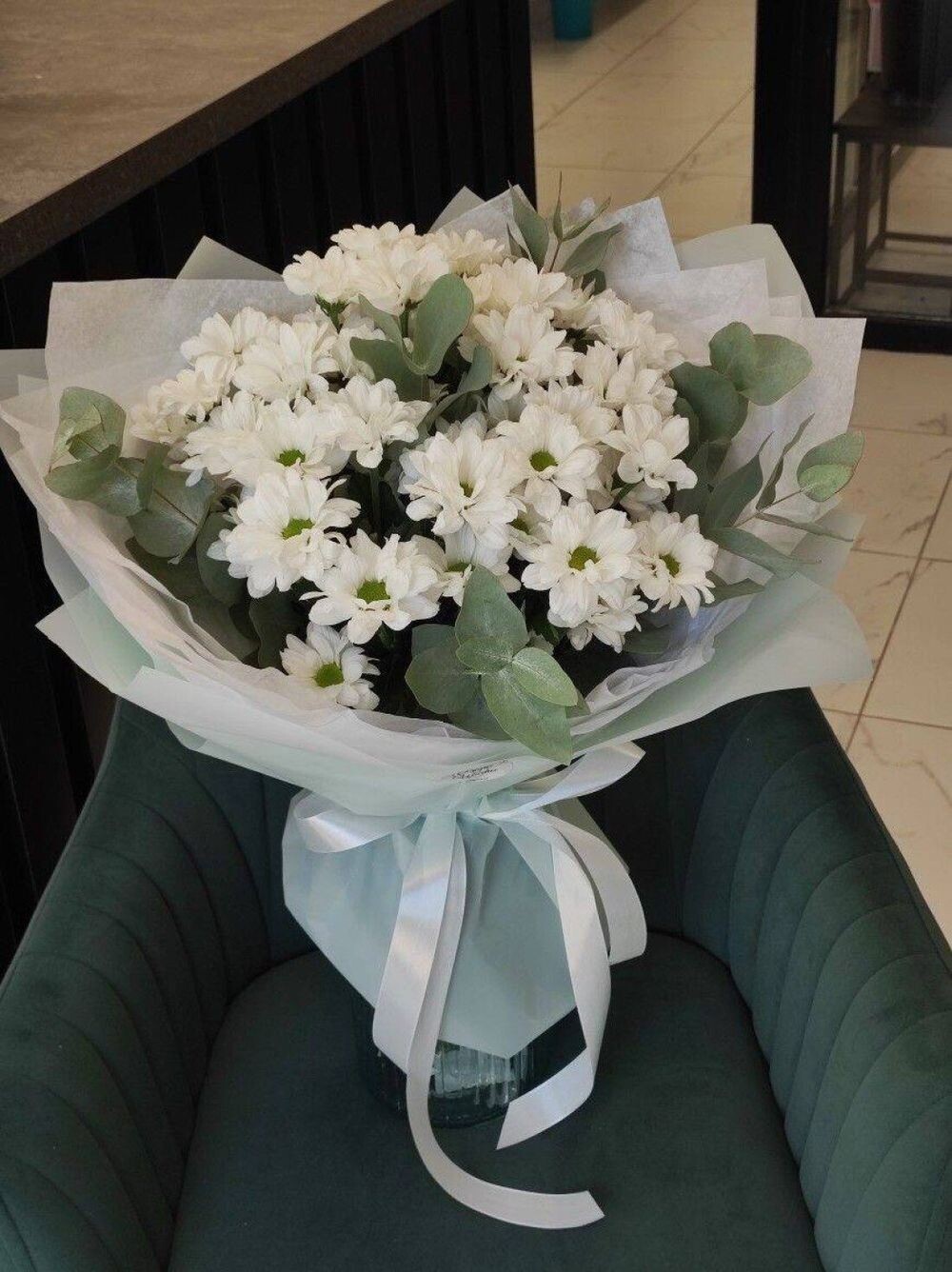 Хризантема ромашка 5шт Эвкалипт 5шт