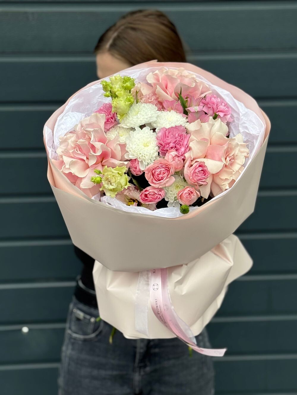 Роза французская 3шт Кустовая Роза 1шт Эустома 2шт Диантус 3шт Хризантема 1шт