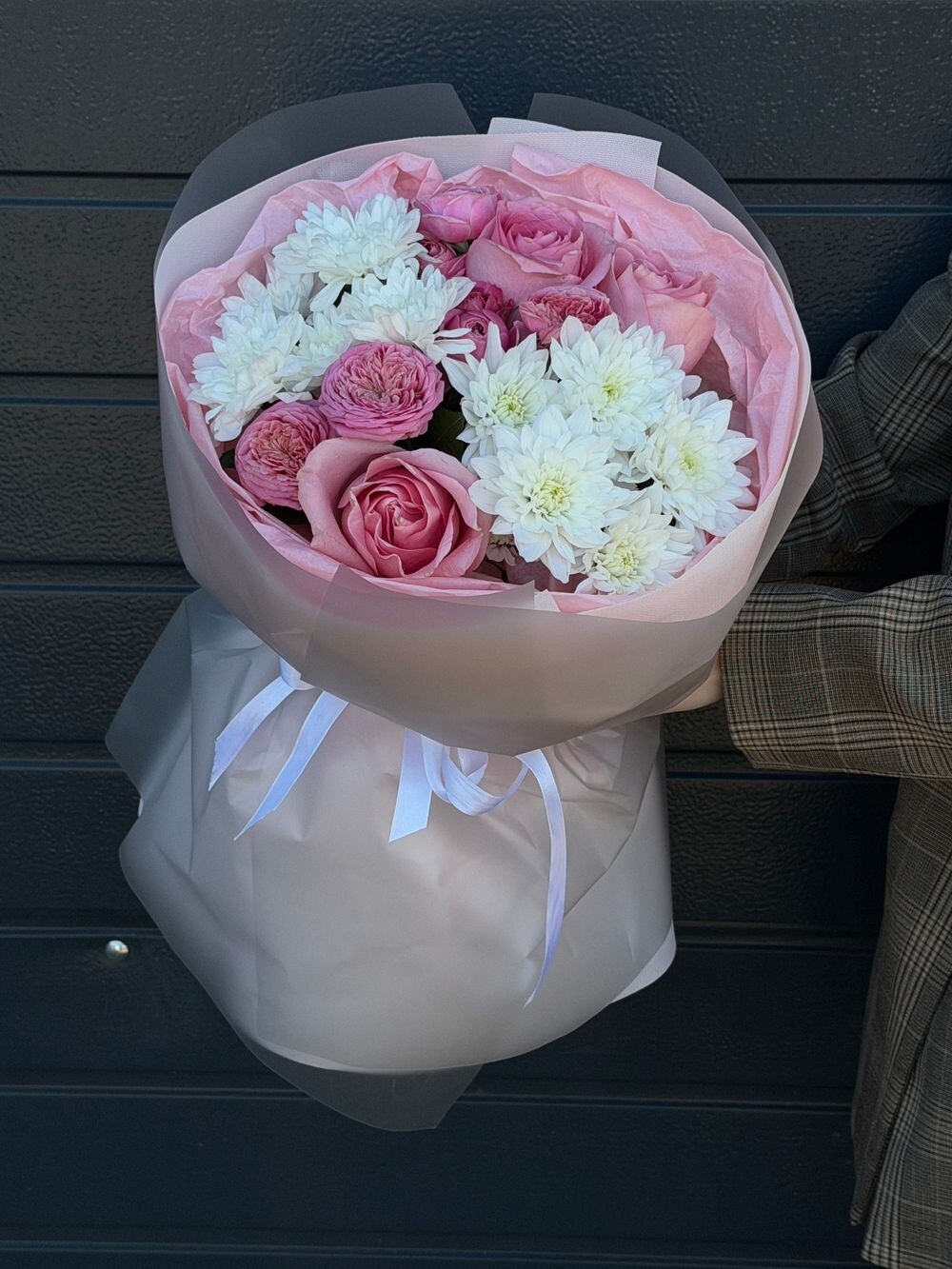 Роза кустовая 2шт Роза 3шт Хризантема 2шт
