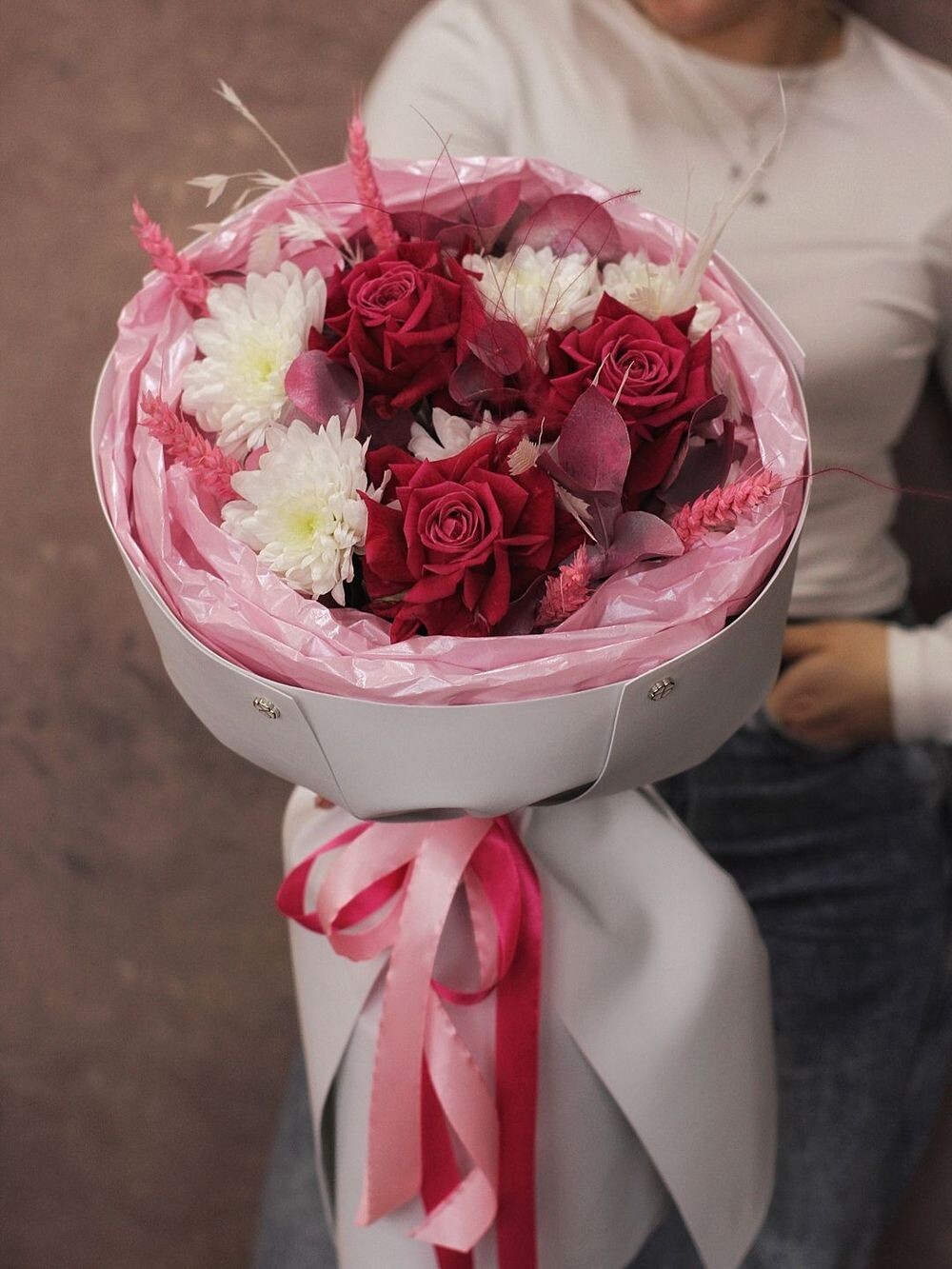Хризантема 1шт Роза 3шт Эвкалипт 4шт Сухоцвет