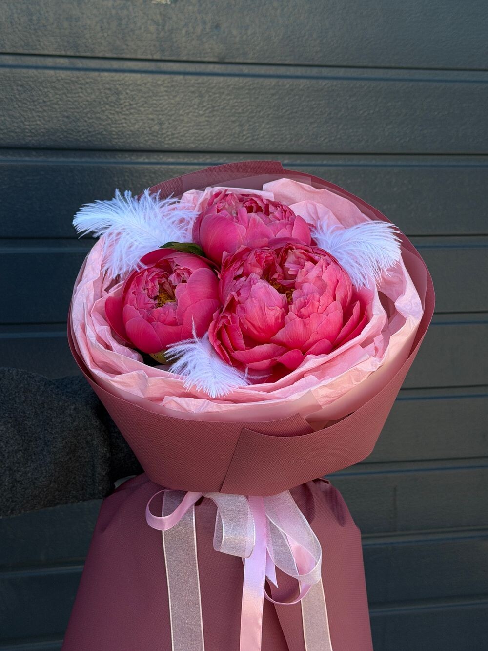 Пионы Корал Шарм 3шт Перья